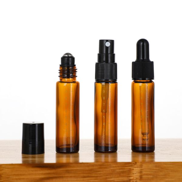 Glass Essential Oil Roller Bottles with Stainless Steel Ball, 10ml Amber Roll on Perfume Bottles